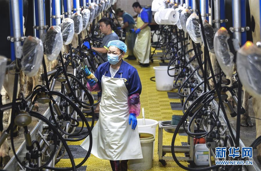 6月3日,村民在深州市榆科鎮(zhèn)郝家莊村奶牛養(yǎng)殖扶貧基地查看擠奶設(shè)備運(yùn)行情況。今年以來,河北省深州市圍繞決勝全面小康、決戰(zhàn)脫貧攻堅(jiān)任務(wù)目標(biāo),在推進(jìn)產(chǎn)業(yè)扶貧的過程中注重激發(fā)內(nèi)生動(dòng)力,通過電商扶貧、扶貧車間、特色種植養(yǎng)殖等多種形式,提升自我“造血”功能,提高貧困群眾受益度。新華社記者李曉果攝。