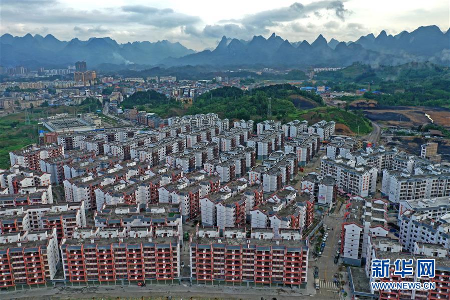 這是廣西環(huán)江毛南族自治縣毛南家園易地扶貧搬遷城北安置區(qū)(5月21日攝,無人機照片)。新華社記者周華攝。