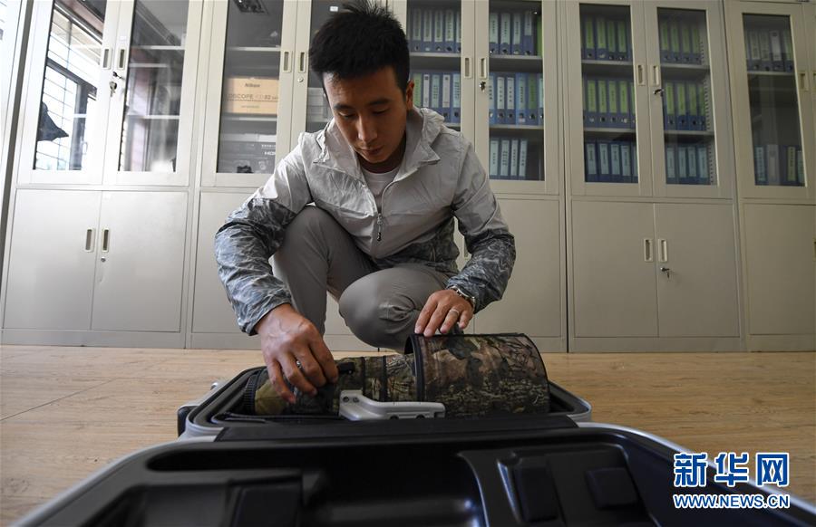 6月3日,李學(xué)明在整理設(shè)備,準(zhǔn)備開始當(dāng)天的巡護(hù)監(jiān)測工作。新華社記者馮開華攝。
