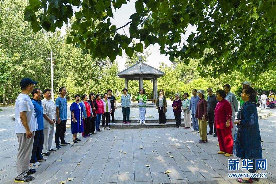 6月5日,市民在文安縣水景公園內(nèi)練習(xí)合唱。近年來,河北省文安縣將植樹造林與城市建設(shè)有機(jī)融合,探索“政府引導(dǎo)、企業(yè)運(yùn)作、多方共贏”的市場化植樹造林新模式,大規(guī)模推進(jìn)國土綠化,打造人與自然和諧共生的優(yōu)美生態(tài)環(huán)境,構(gòu)筑京津雄綠色屏障。截至目前,該縣森林覆蓋率已經(jīng)達(dá)到33%,城區(qū)綠地面積達(dá)到36.48%。新華社記者李曉果攝。