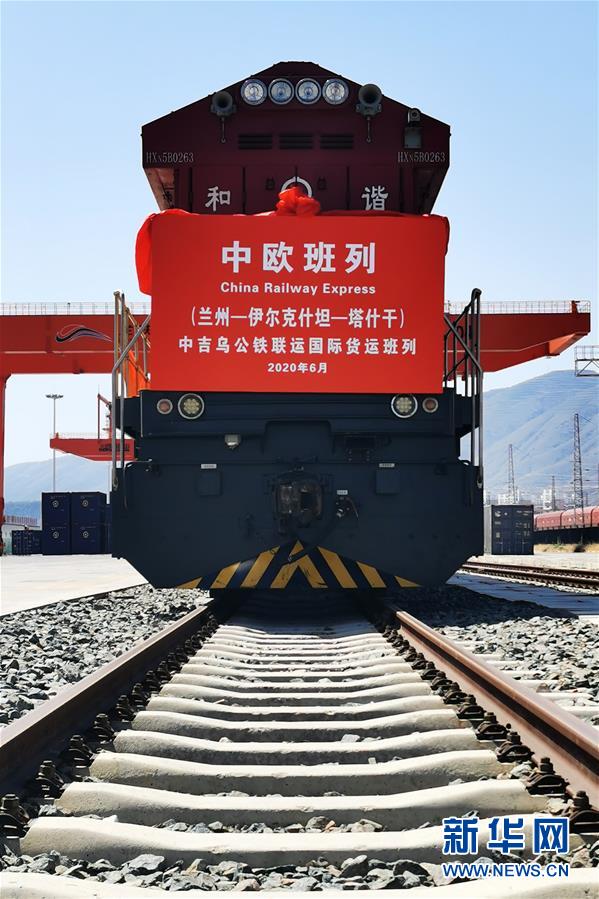 這是6月5日在甘肅蘭州國際陸港拍攝的準備發(fā)車的“中吉烏”公鐵聯(lián)運國際貨運班列。新華社記者范培珅攝。