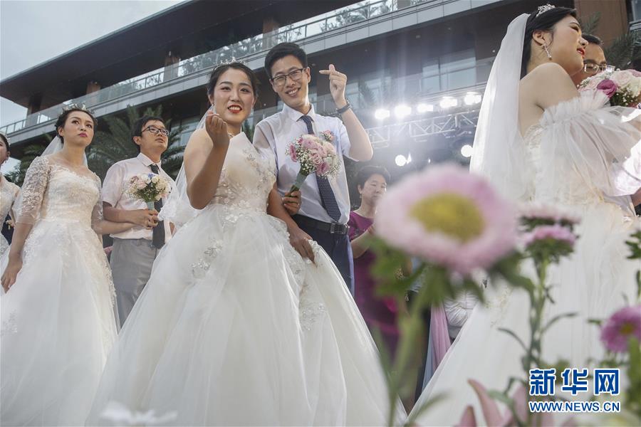 6月6日,新人在海南博鰲樂城國際醫(yī)療旅游先行區(qū)參加集體婚禮。 新華社記者 張玉薇 攝