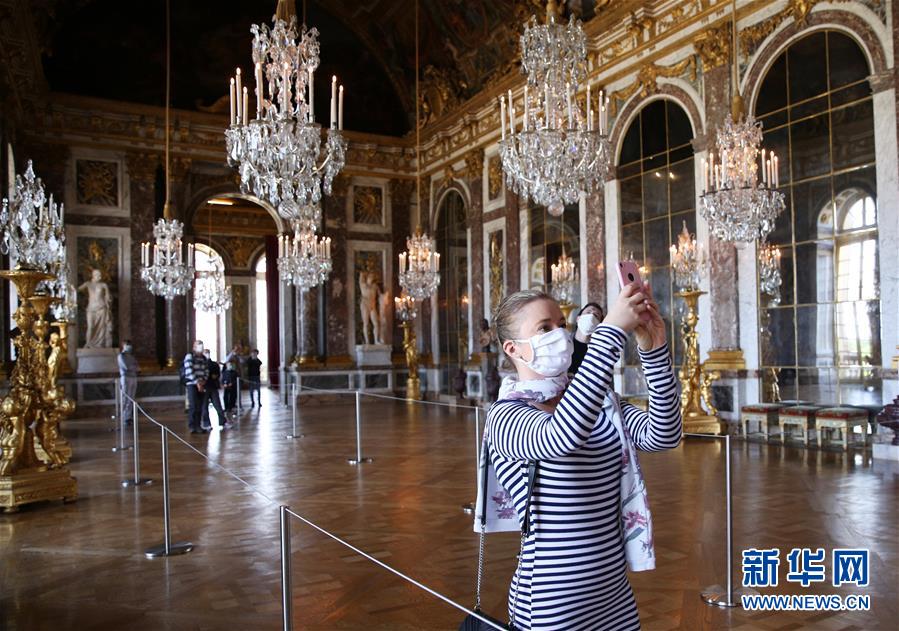 6月6日,游客在法國(guó)巴黎近郊凡爾賽宮的鏡廳內(nèi)參觀游覽。 新華社記者 高靜 攝