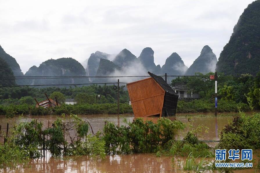 這是廣西陽朔縣被洪水沖毀的旅游設(shè)施(6月7日攝)。新華社記者陸波岸攝