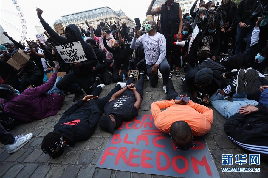 6月7日,民眾在比利時布魯塞爾市中心的司法宮附近參加示威活動。比利時民眾當(dāng)日在布魯塞爾市中心的司法宮附近舉行示威活動,抗議美國明尼阿波利斯市警察暴力執(zhí)法致非裔男子喬治·弗洛伊德死亡。新華社記者鄭煥松攝
