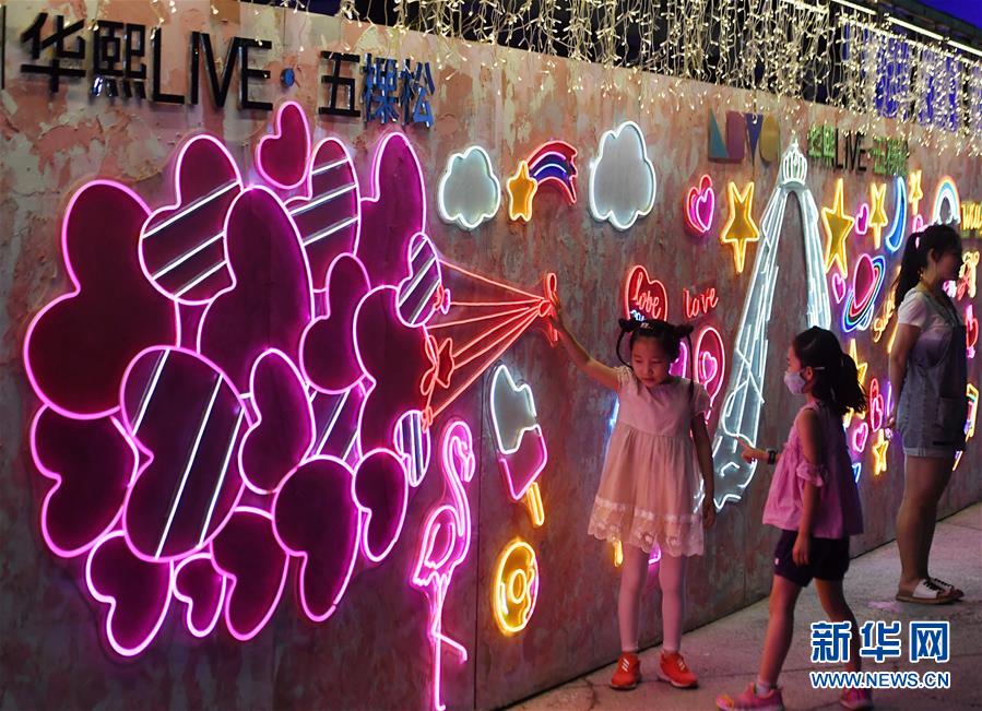 6月6日,小朋友在北京五棵松華熙Live游玩。6月6日晚,北京79個(gè)地標(biāo)、商圈、特色街區(qū)同時(shí)點(diǎn)亮夜京城,營造消費(fèi)氛圍,北京“夜經(jīng)濟(jì)”也加速回暖。新華社記者張晨霖?cái)z