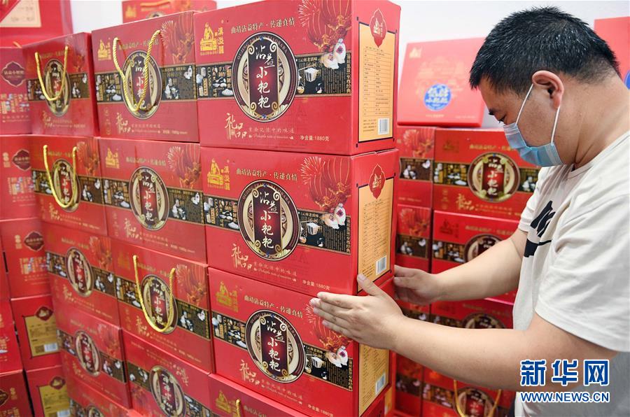 6月6日,云南曲靖市沾益區(qū)一家食品公司的工人在整理包裝完成的沾益小粑粑。沾益小粑粑是云南省曲靖市沾益區(qū)一種獨(dú)具風(fēng)味的特色食品,采用優(yōu)質(zhì)上等食材,經(jīng)過(guò)20道工序精心制作而成,受到消費(fèi)者歡迎。沾益小粑粑產(chǎn)業(yè)也帶動(dòng)當(dāng)?shù)剞r(nóng)民實(shí)現(xiàn)增收。新華社記者楊宗友攝