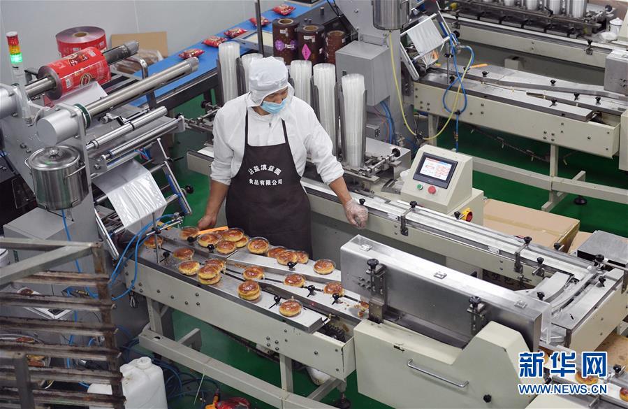 6月6日,云南曲靖市沾益區(qū)一家食品公司的工人在包裝沾益小粑粑。沾益小粑粑是云南省曲靖市沾益區(qū)一種獨(dú)具風(fēng)味的特色食品,采用優(yōu)質(zhì)上等食材,經(jīng)過(guò)20道工序精心制作而成,受到消費(fèi)者歡迎。沾益小粑粑產(chǎn)業(yè)也帶動(dòng)當(dāng)?shù)剞r(nóng)民實(shí)現(xiàn)增收。新華社記者楊宗友攝