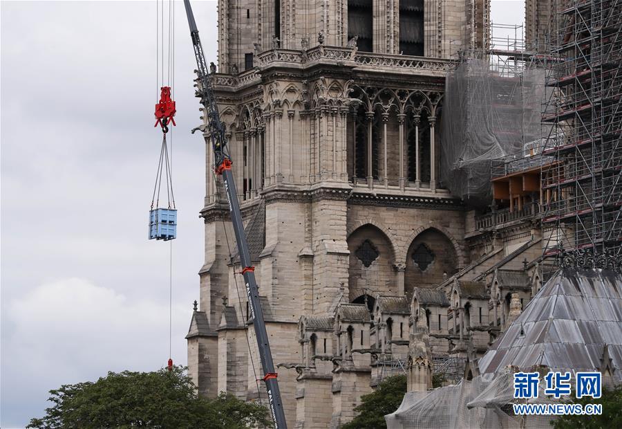 這是6月9日在法國巴黎拍攝的正在進行腳手架拆除工作的巴黎圣母院。法國巴黎圣母院于8日開始拆除去年大火中被焚的腳手架。作為巴黎圣母院修復工作的重要組成部分,這項工程預計將持續(xù)至少3個月。2019年4月15日,巴黎圣母院遭遇大火,當時圣母院正在進行維修,搭建的腳手架在火災中損毀、變形。新華社記者高靜攝
