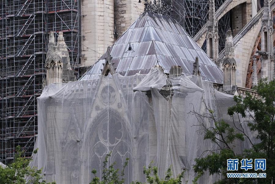 這是6月9日在法國巴黎拍攝的正在進行腳手架拆除工作的巴黎圣母院。法國巴黎圣母院于8日開始拆除去年大火中被焚的腳手架。作為巴黎圣母院修復(fù)工作的重要組成部分,這項工程預(yù)計將持續(xù)至少3個月。2019年4月15日,巴黎圣母院遭遇大火,當時圣母院正在進行維修,搭建的腳手架在火災(zāi)中損毀、變形。新華社記者高靜攝