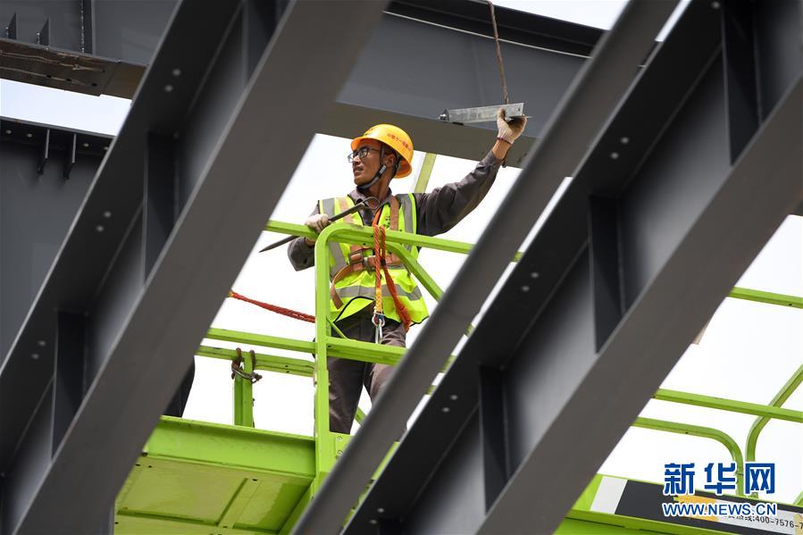 6月9日,工人在位于重慶市巴南區(qū)的渝湘高鐵重慶段建設(shè)工地現(xiàn)場作業(yè)。