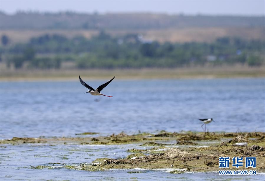 這是6月9日在泊江海子拍攝的黑翅長腳鷸。近年來,在當(dāng)?shù)卣亩喾N措施治理下,曾經(jīng)水面萎縮的內(nèi)蒙古自治區(qū)鄂爾多斯市境內(nèi)的泊江海子水量逐漸恢復(fù)。近期,包括遺鷗在內(nèi)的40多種鳥類來此棲息,泊江海子重新成為鳥類的樂園。新華社記者賈立君攝