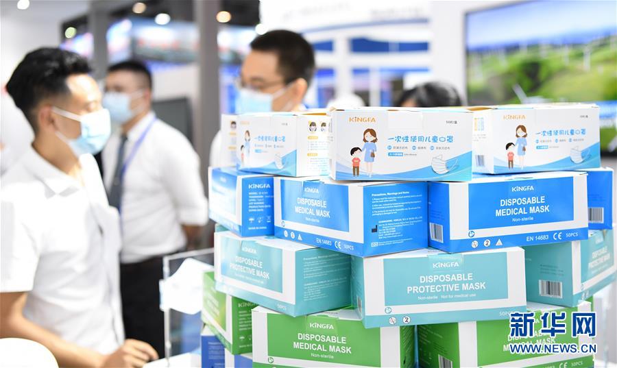 6月10日拍攝的展會上的口罩生產(chǎn)商展位。當(dāng)日,廣州國際防疫物資展覽會在保利世貿(mào)博覽館舉行。本次展會面積共計3.6萬平方米,設(shè)有防疫產(chǎn)品、設(shè)備、綜合服務(wù)、原輔料等4個展區(qū),參展企業(yè)約600家。新華社記者鄧華攝