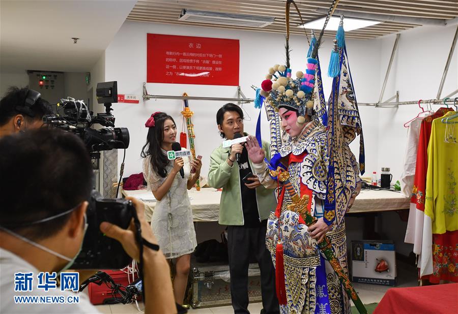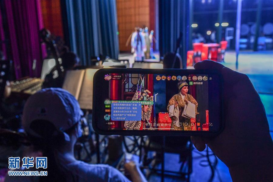 6月12日,直播工作人員探訪廣東粵劇院后臺。當日,廣東粵劇院聯(lián)合酷狗網(wǎng)絡(luò)直播平臺推出“周末睇大戲(線上版)”,將線下劇場轉(zhuǎn)移到線上,在酷狗直播間里呈現(xiàn)粵劇的經(jīng)典劇目,為劇迷們打造一場“云端”盛宴。新華社記者 劉大偉 攝