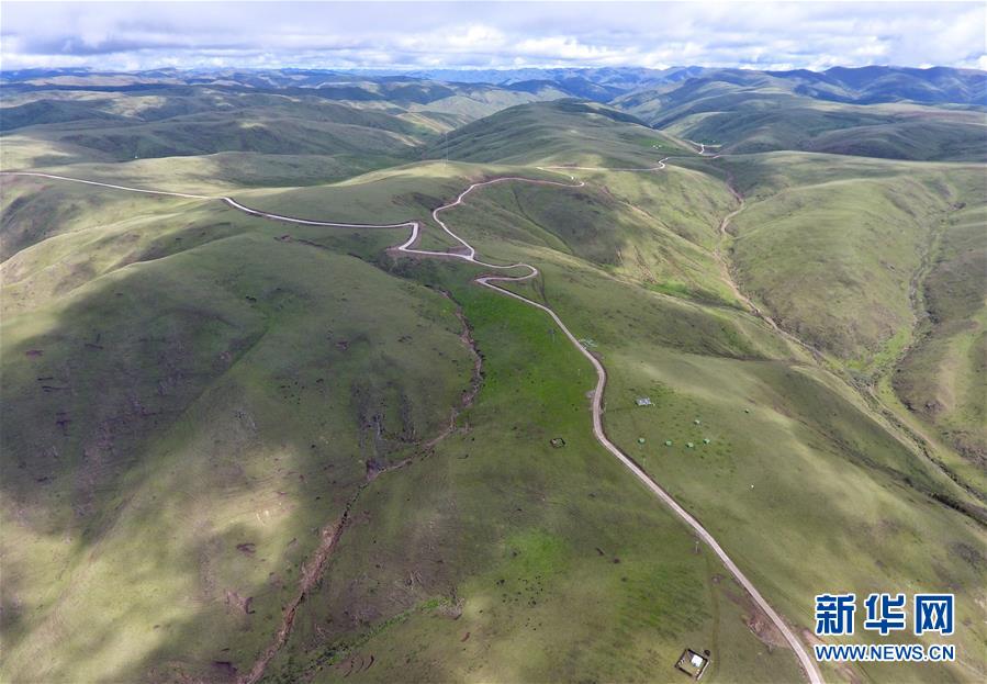 這是6月13日無人機(jī)航拍的“上南天路”和路邊的牧民居所。居住在路邊的牧民,因?yàn)橛辛诉@條路,出行更加方便。新華社記者 沈伯韓 攝