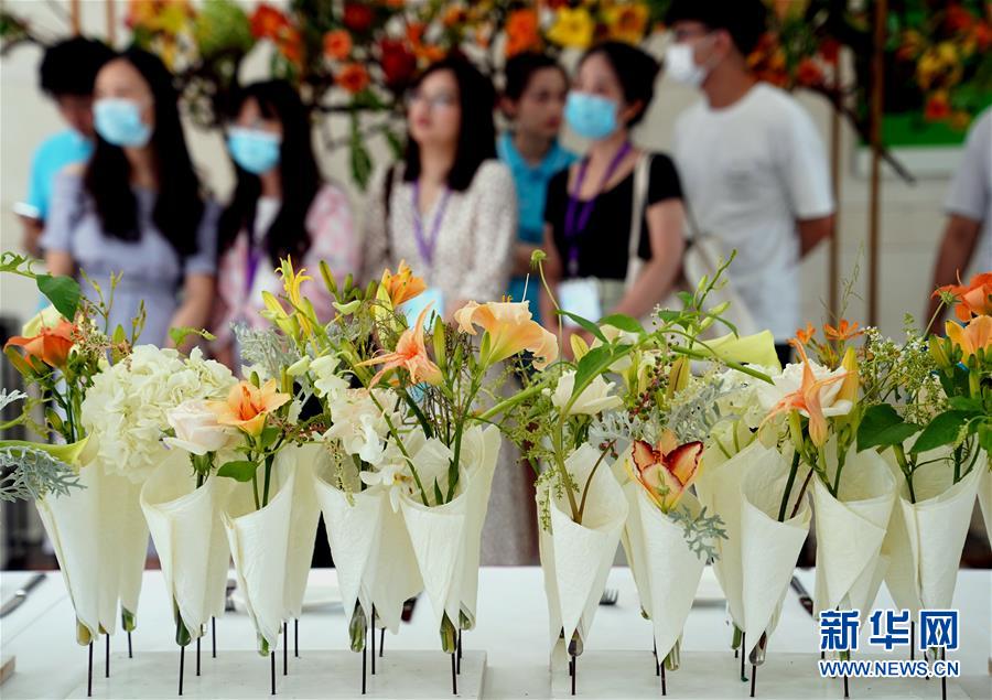 這是開幕式現(xiàn)場展示的大學生設計創(chuàng)作的萱草花小花束(6月13日攝)。6月13日,“2020中國(上海)萱草文化節(jié)”在上海應用技術大學開幕,校園里數(shù)百個品種的萱草花競相綻放,萱草科研推廣、萱草文化交流等多項活動同時舉行。新華社記者 劉穎 攝