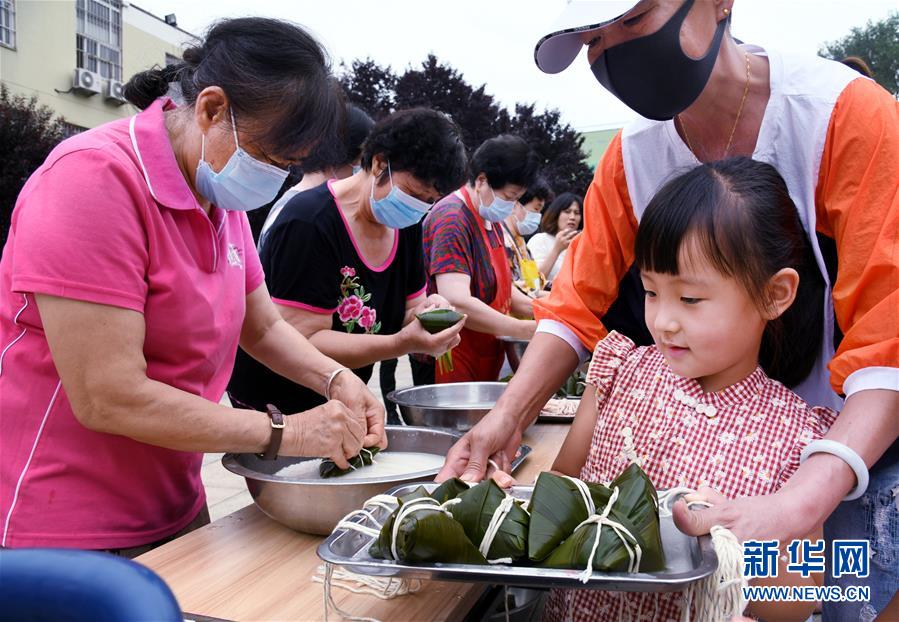 6月17日,水清溝街道居民在社區(qū)廣場(chǎng)上包粽子。當(dāng)日,青島市北區(qū)水清溝街道開展迎端午鄰里愛心傳遞進(jìn)網(wǎng)格活動(dòng),居民通過包粽子、吃粽子、網(wǎng)上端午傳統(tǒng)文化課等形式傳遞鄰里愛心,傳承民俗文化。新華社記者 李紫恒 攝