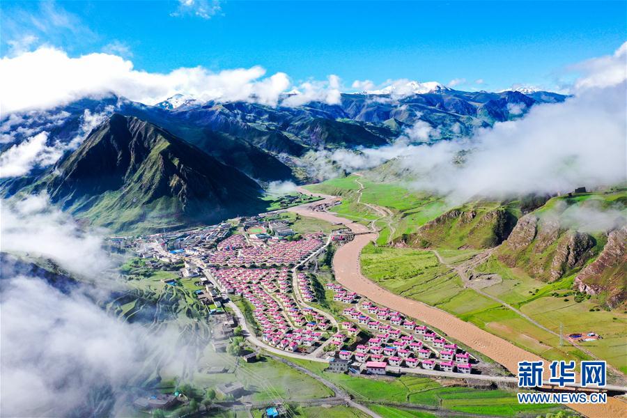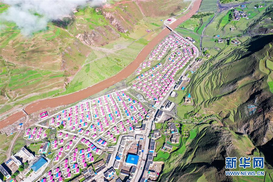 位于丁青縣嘎曲河畔的尺牘鎮(zhèn)易地扶貧搬遷點(diǎn)(6月14日攝,無(wú)人機(jī)照片)。新華社記者 白少波 攝
