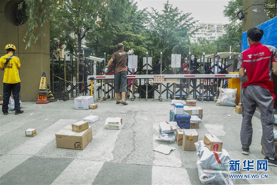 6月17日,快遞員在北京市西城區(qū)廣外街道朗琴園社區(qū)等待居民來(lái)取件。新華社記者 張玉薇 攝