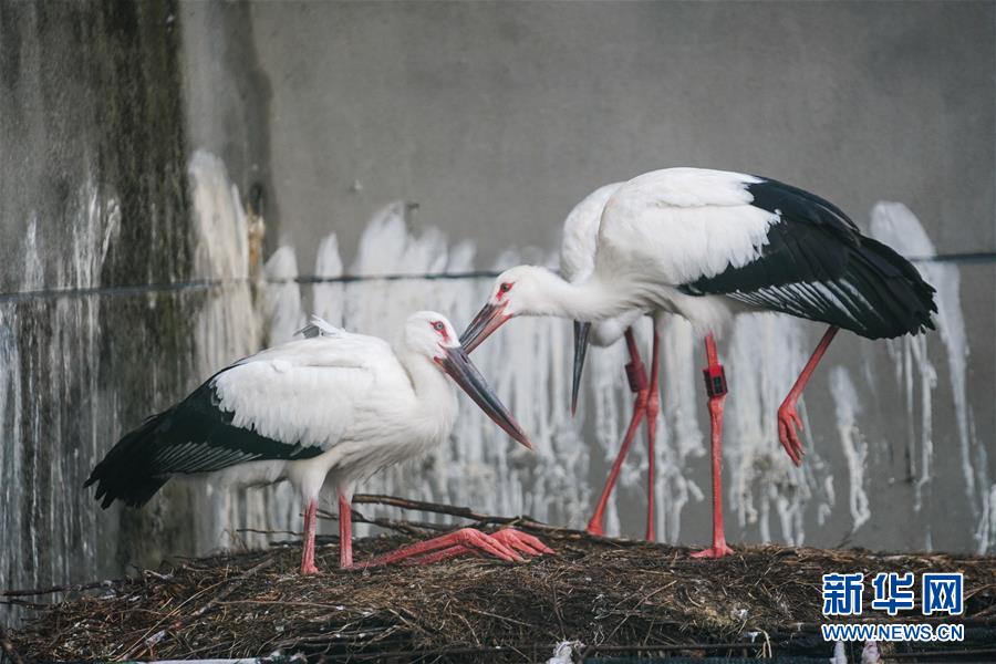三只東方白鸛鄱陽湖畔放歸自然