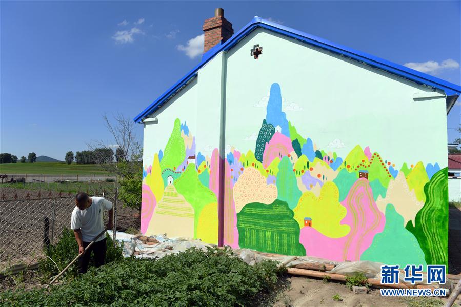 6月18日,一名吉林藝術(shù)學(xué)院學(xué)生在清水村進(jìn)行涂鴉創(chuàng)作。新華社記者林宏攝