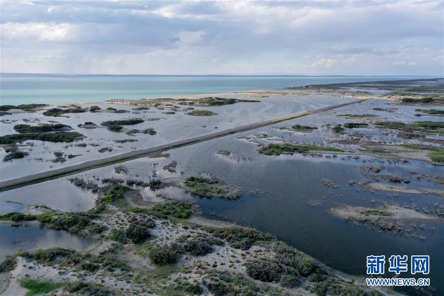 6月18日拍攝的新疆烏倫古湖國(guó)家濕地公園(無(wú)人機(jī)照片)。烏倫古湖國(guó)家濕地公園位于新疆阿勒泰地區(qū)福??h城以西,由烏倫古湖和吉力湖兩部分組成。烏倫古湖濕地公園是遷徙候鳥(niǎo)飛越天山和阿爾泰山的“能量補(bǔ)充站”,良好的濕地生態(tài)吸引著大量遷徙鳥(niǎo)類在此集結(jié)成群,繁殖棲息,成為一道靚麗的風(fēng)景線。新華社記者 沙達(dá)提 攝