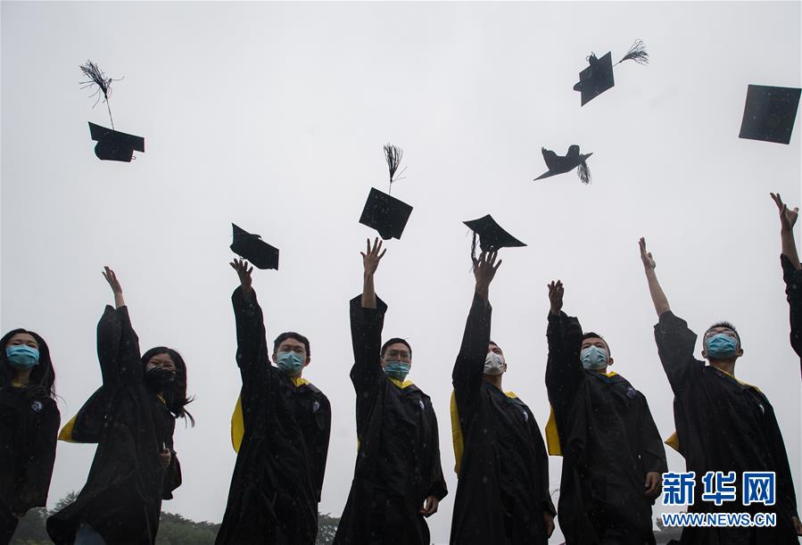 6月20日,武漢大學(xué)畢業(yè)生慶祝畢業(yè)。