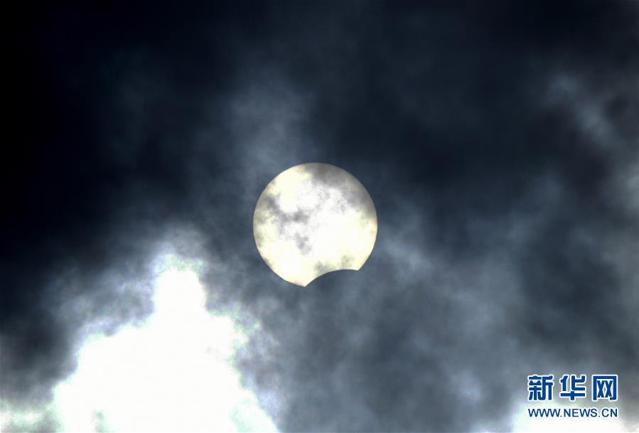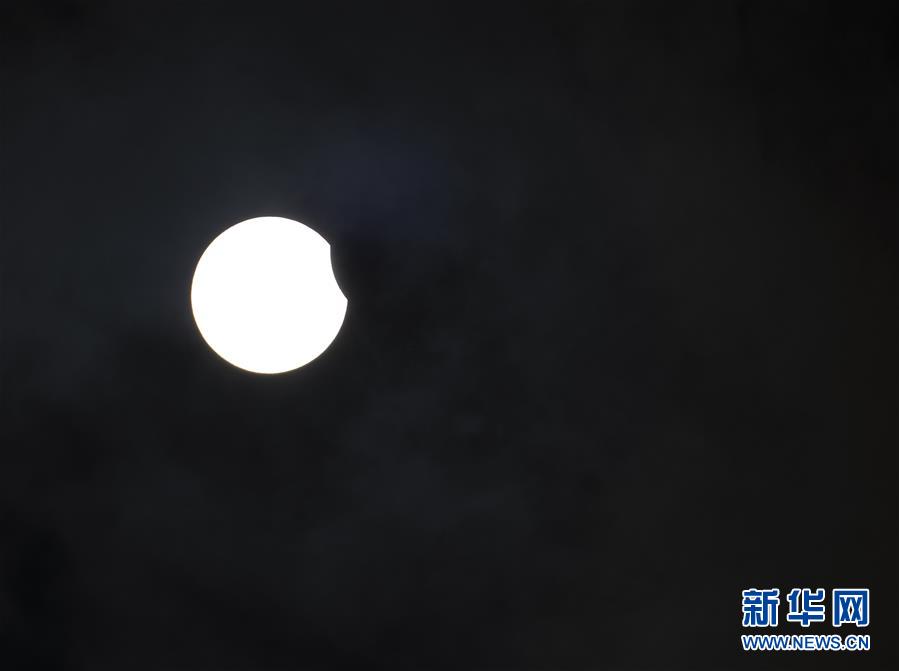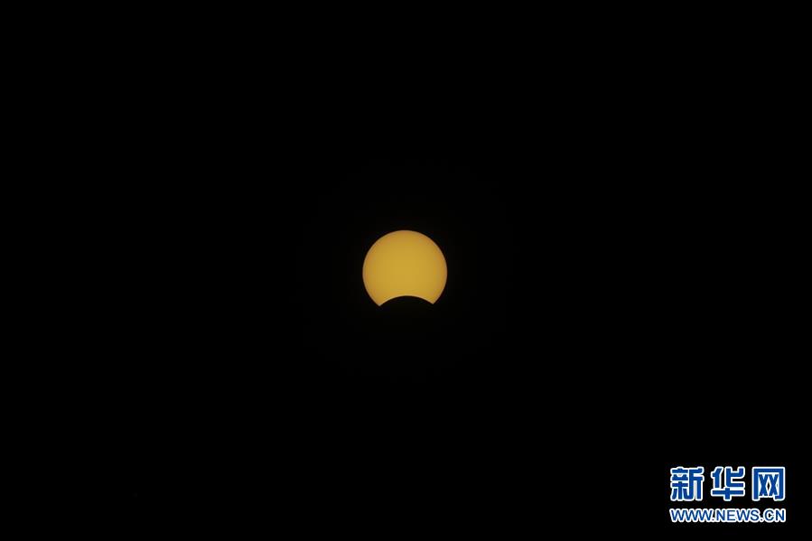 在拉薩觀賞到的日食(6月21日攝)?!叭窄h(huán)食”天文景觀于6月21日“夏至日”下午在天宇上演。新華社記者 孫非 攝