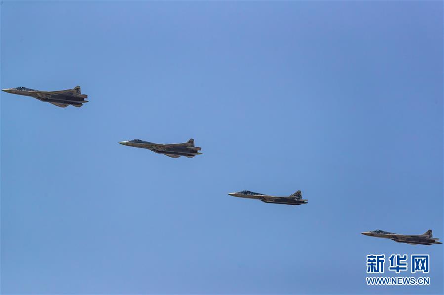 6月20日,在俄羅斯首都莫斯科,蘇-57戰(zhàn)斗機(jī)編隊(duì)參加閱兵式彩排。俄羅斯將于6月24日舉行紀(jì)念衛(wèi)國戰(zhàn)爭勝利75周年閱兵式。新華社記者白雪騏攝