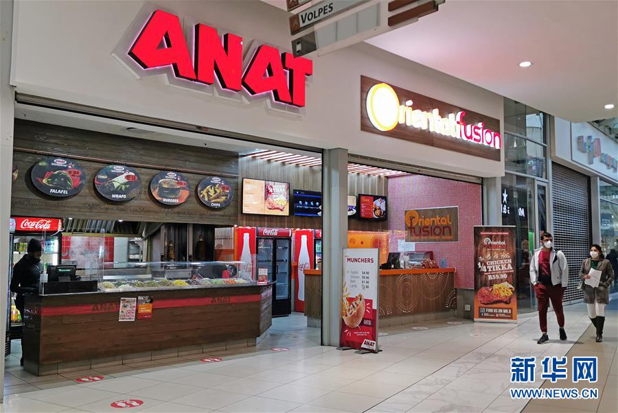 6月22日,市民走過(guò)南非約翰內(nèi)斯堡一家商場(chǎng)內(nèi)的快餐店。南非衛(wèi)生部22日說(shuō),過(guò)去24小時(shí)該國(guó)新增確診病例4288例,累計(jì)確診101590例,占非洲大陸確診總數(shù)約三分之一;累計(jì)死亡1991例。南非的單日新增確診病例已連續(xù)多天保持在4000例以上。新華社記者陳誠(chéng)攝
