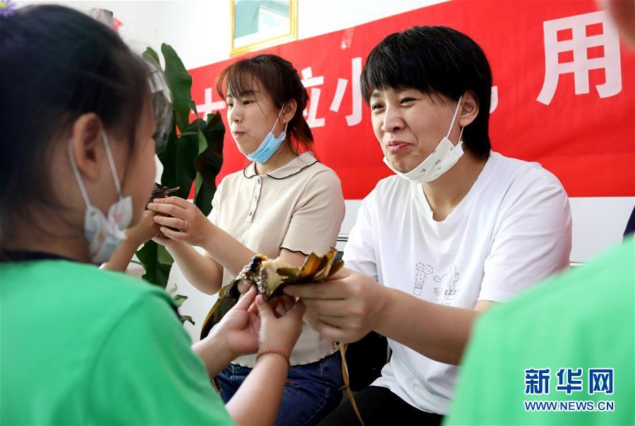 6月24日,在河北省廊坊市安次區(qū)西小街社區(qū)活動(dòng)中心,孩子們將親手包制的粽子送給母親品嘗。端午節(jié)臨近,各地舉行包粽子、做香包、賽龍舟等豐富多彩的民俗文化活動(dòng),迎接傳統(tǒng)佳節(jié)的到來(lái)。新華社記者王曉攝