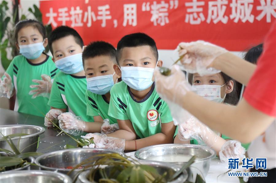6月24日,在河北省廊坊市安次區(qū)西小街社區(qū)活動中心,孩子們學習包粽子。端午節(jié)臨近,各地舉行包粽子、做香包、賽龍舟等豐富多彩的民俗文化活動,迎接傳統(tǒng)佳節(jié)的到來。新華社記者王曉攝