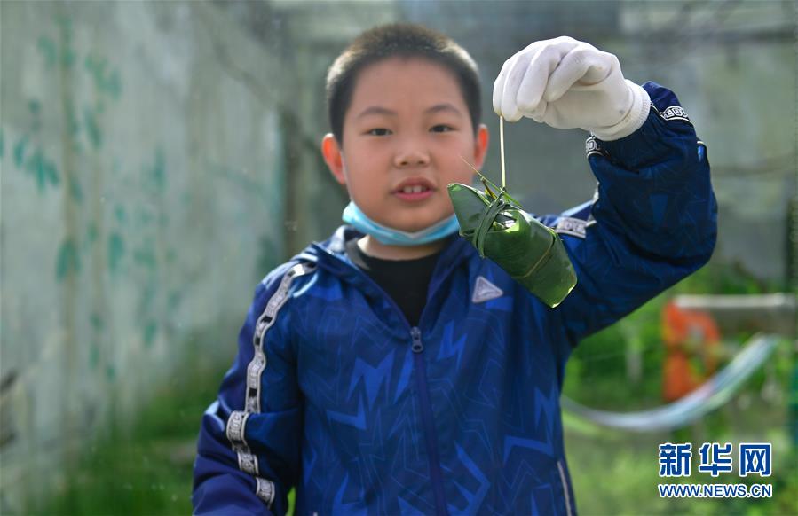 6月25日,在青海省西寧野生動物園,一位小朋友在展示自己包的粽子。新華社記者 張龍 攝