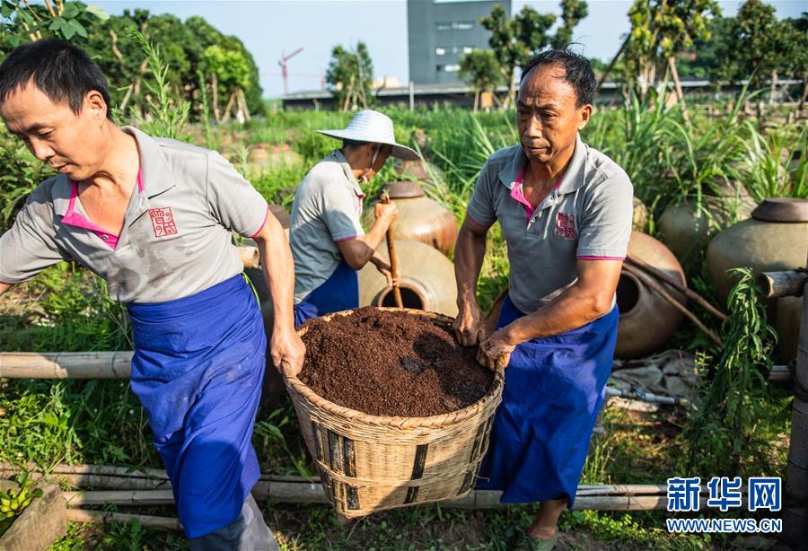 6月26日,工人在曾氏曬醋廠搬運醋醅。新華社記者 陶亮 攝