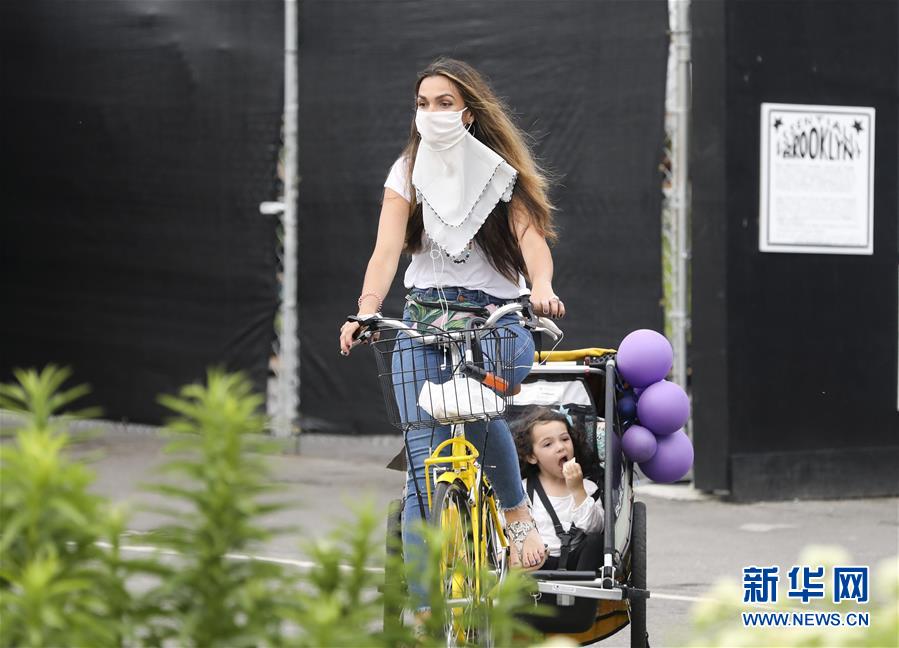 6月27日,一名女士在美國(guó)紐約多米諾公園內(nèi)騎車(chē)帶孩子游玩。美國(guó)約翰斯·霍普金斯大學(xué)27日發(fā)布的新冠疫情最新統(tǒng)計(jì)數(shù)據(jù)顯示,截至美國(guó)東部時(shí)間27日16時(shí)35分(北京時(shí)間28日4時(shí)35分),美國(guó)累計(jì)新冠確診病例2500419例,累計(jì)死亡病例125434例。新華社記者王迎攝