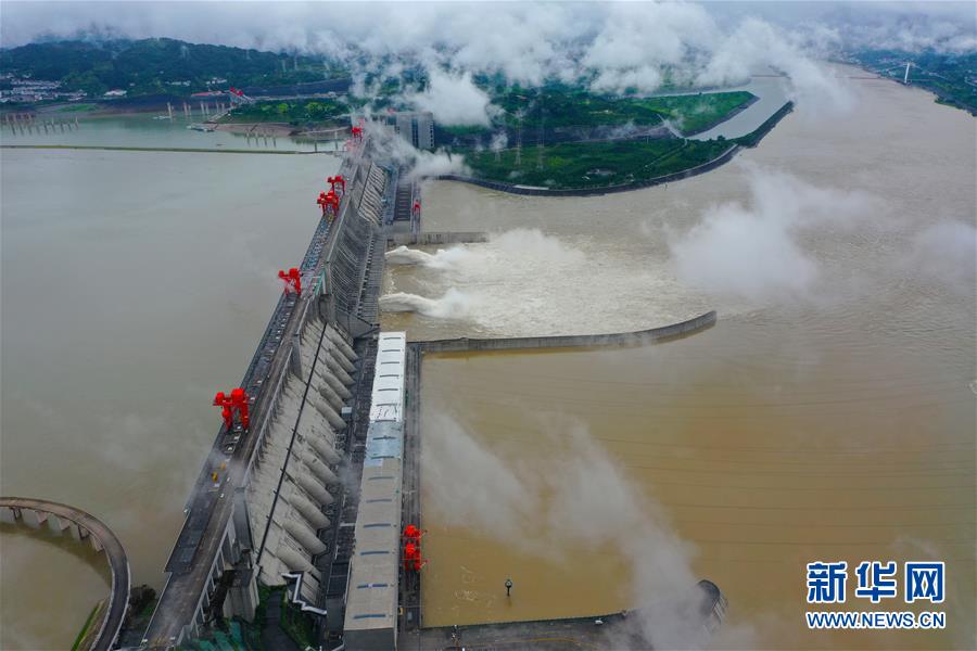 6月29日,三峽樞紐開啟泄洪孔泄洪(無人機(jī)照片)。受長江中上游強(qiáng)降雨影響,進(jìn)入三峽水庫的水量持續(xù)增多。為騰出一定庫容迎接近期可能到來的洪水,三峽樞紐于6月29日上午開啟兩個泄洪孔,加大下泄流量。這是三峽樞紐今年首次泄洪。28日14時,三峽水庫入庫流量達(dá)4萬立方米/秒,是27日14時的兩倍。為應(yīng)對此輪來水,長江防總要求將三峽水庫下泄流量上調(diào)至日均3.5萬立方米/秒。新華社發(fā)(黃善軍攝)