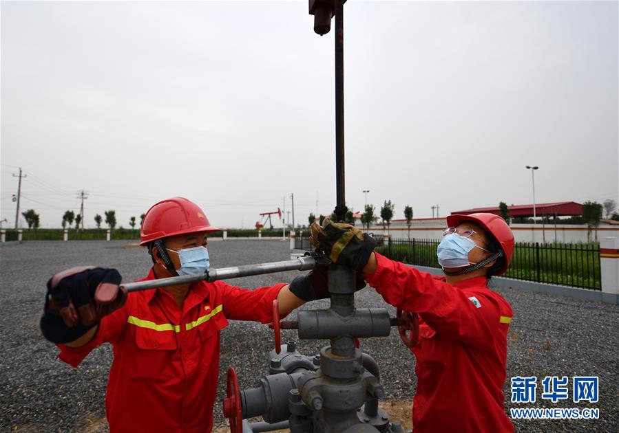 6月29日,馮萌萌在大港油田采油二廠二區(qū)內(nèi)查看設備運行情況。新華社記者李然攝