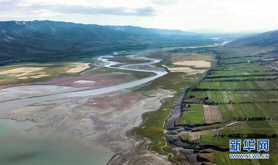 這是6月29日無(wú)人機(jī)拍攝的位于新疆特克斯縣境內(nèi)的喀拉托海湖風(fēng)光(無(wú)人機(jī)照片)。時(shí)值夏日,位于天山腳下的新疆特克斯縣境內(nèi)的喀拉托海湖風(fēng)光宜人,景色優(yōu)美。新華社記者王菲攝