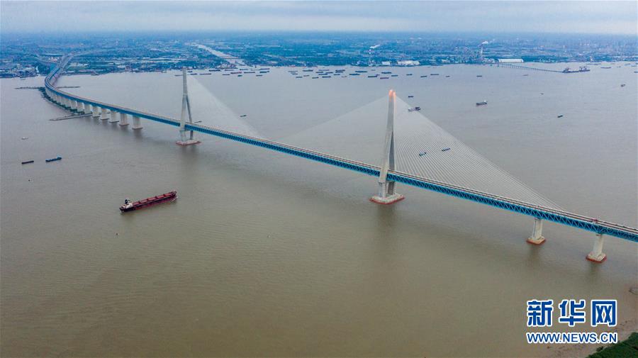 滬蘇通長(zhǎng)江公鐵大橋(6月29日攝,無(wú)人機(jī)照片)。即將于7月1日通車的滬蘇通長(zhǎng)江公鐵大橋北起江蘇南通,南至江蘇張家港,公鐵合建跨江正橋全長(zhǎng)5827米,為集合高速公路、客貨混線鐵路、高速鐵路的“三合一”過(guò)江通道,建成通車后將有效促進(jìn)長(zhǎng)三角城市群跨江融合、協(xié)同發(fā)展。新華社記者李博攝