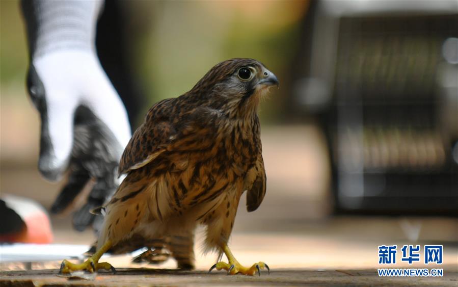這是7月1日在放飛活動上拍攝的一只紅隼。新華社記者林宏攝