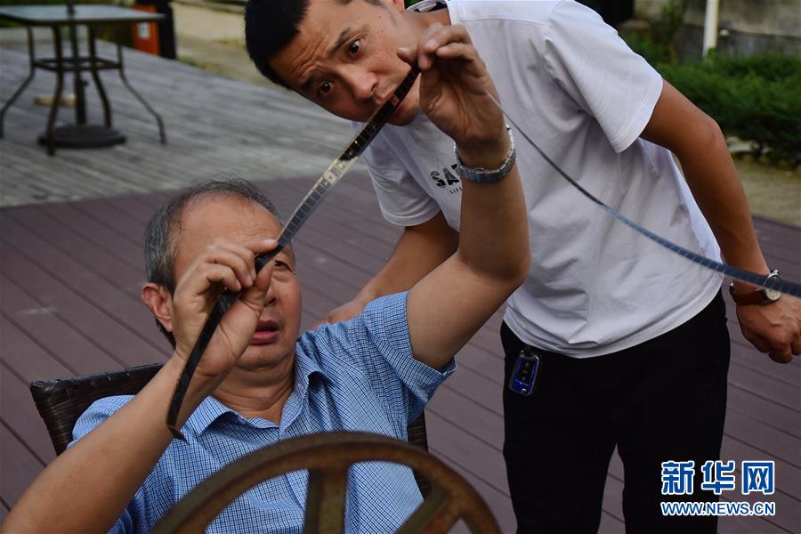 在浙江嘉興桐鄉(xiāng)市洲泉鎮(zhèn)馬鳴村,王志華、朱文炳、朱生榮、朱強四代電影放映員,“接力”放映電影五十余年。一臺放映機、幾盤膠片、一面白墻,構(gòu)成他們的“流動電影院”,“噠噠”的走帶聲轉(zhuǎn)出了光影老味道,也轉(zhuǎn)動了整村人的文化生活。第四代放映人“85后”小伙朱強從小在幕布前長大,深受父輩影響。隨著數(shù)字電影的普及,膠片電影逐漸退場。如今的他在馬鳴電影館、學(xué)校等場所進行教學(xué)、展示等活動,宣傳電影文化。對他而言,一代接一代從事電影工作,就是為了承續(xù)傳統(tǒng)?!皫煚敔斀涛覀冋J(rèn)真放好每部電影,即便只有一位觀眾,我們也不會讓它停機?!敝鞆娬f。