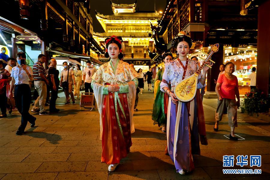 7月3日,上海豫園內(nèi)舉行古裝巡游活動。從7月第一個周末起,上海豫園原有的“豫園六點(diǎn)半”集市全面升級,煥彩燈光、演藝活動和花車集市全線更新,讓市民和游客在觀燈、觀人、觀演的沉浸式體驗(yàn)中,享受夏日特色的“食玩”樂趣。新華社記者 劉穎 攝