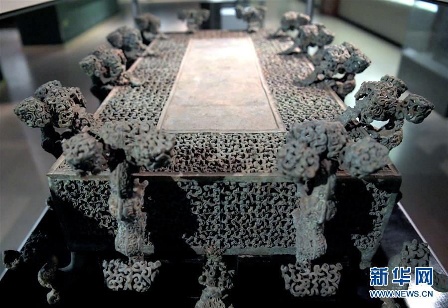這是河南博物院展廳里的云紋銅禁(2019年11月18日攝)。新華社記者李安攝
