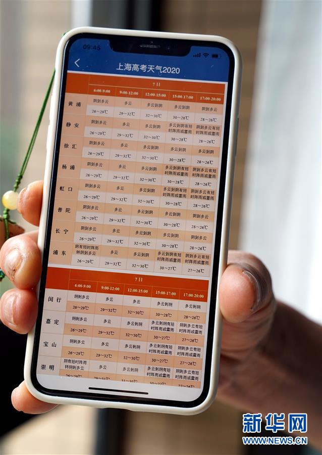 7月7日,上海市氣象部門推出“分時分區(qū)”的高考氣象服務。當日,2020年高考拉開帷幕。新華社記者劉穎攝