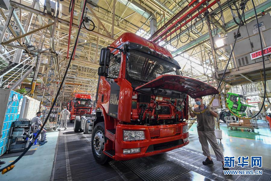 在位于長春市的一汽解放總裝車間,工人在裝配車輛(6月19日攝)。中國第一汽車集團披露,截至6月30日,集團上半年共計生產(chǎn)整車162.23萬輛,同比增長1.5%;銷售整車163.09萬輛,同比增長2.3%。新華社記者張楠攝