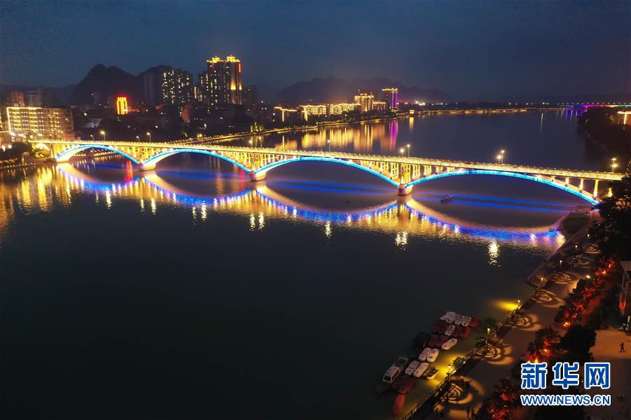 這是融安縣城夜色(7月7日攝,無人機照片)。夏夜的廣西融安縣城燈火璀璨,景色迷人。新華社記者張愛林?jǐn)z