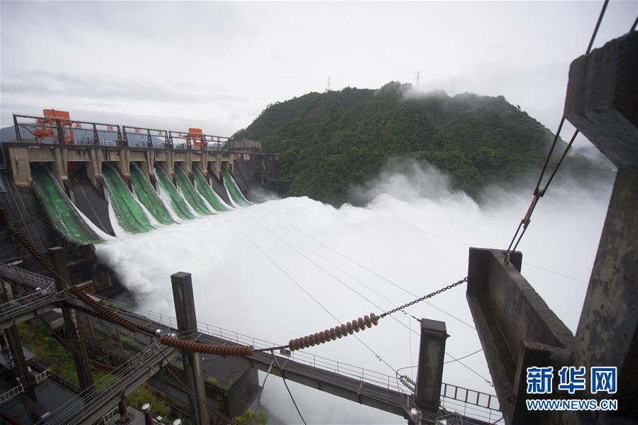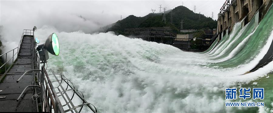 7月7日下午開啟7孔泄洪的新安江水庫(手機(jī)全景模式拍攝)。受持續(xù)降水影響,浙江新安江水庫水位持續(xù)快速上升。繼當(dāng)日10時(shí)開啟3孔、12時(shí)開啟5孔泄洪后,新安江水庫于16時(shí)增加到7孔泄洪。新安江水庫是華東地區(qū)最大的水庫,在錢塘江流域的防洪度汛中起到關(guān)鍵作用。新華社記者翁忻旸攝