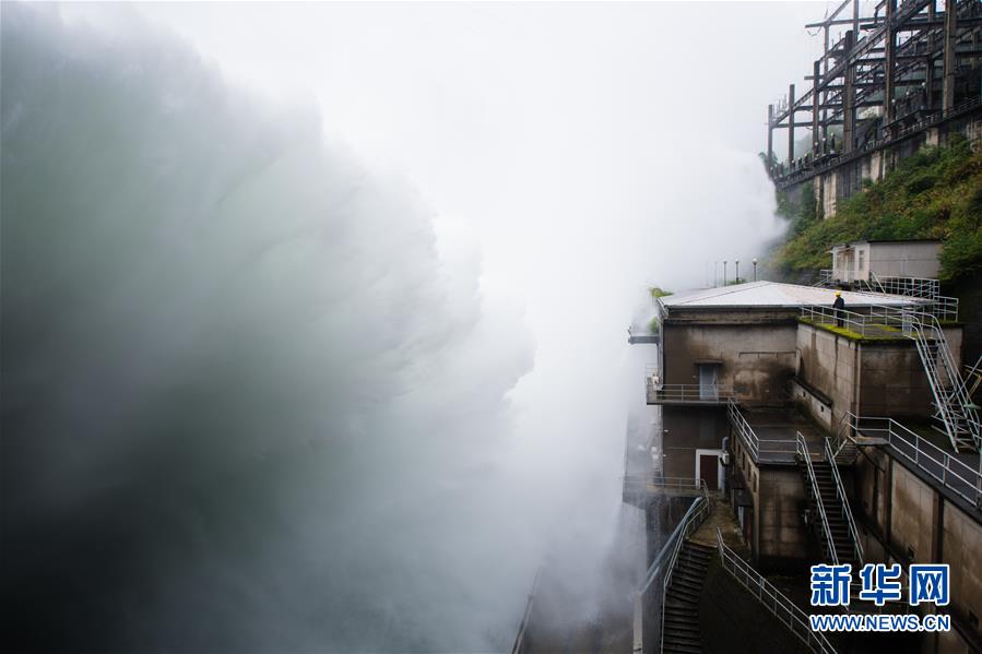 7月8日,新安江水庫(kù)開(kāi)啟9孔泄洪,新安江電廠工作人員在壩區(qū)巡視。當(dāng)日上午10時(shí),新安江水庫(kù)水位108.42米,超汛限水位1.92米,且持續(xù)上漲。繼7日10時(shí)開(kāi)啟3孔、12時(shí)開(kāi)啟5孔、16時(shí)開(kāi)啟7孔泄洪后,水庫(kù)于8日打開(kāi)全部9個(gè)泄洪閘泄洪,這在水庫(kù)建成運(yùn)營(yíng)61年來(lái)尚屬首次。新安江水庫(kù)是華東地區(qū)最大的水庫(kù),在錢(qián)塘江流域的防洪度汛中起到關(guān)鍵作用。新華社記者翁忻旸攝