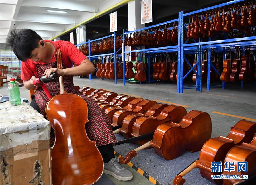 工人在河南駐馬店市確山縣提琴產(chǎn)業(yè)園提琴生產(chǎn)車間打磨琴頭(6月23日攝)。新華社記者李嘉南攝