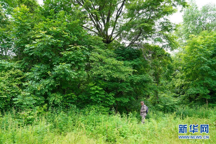 董紅雨在迎春林業(yè)局有限公司施業(yè)區(qū)內(nèi)進行野生東北虎信息搜集和巡護工作(7月8日攝)。新華社記者馬曉成攝